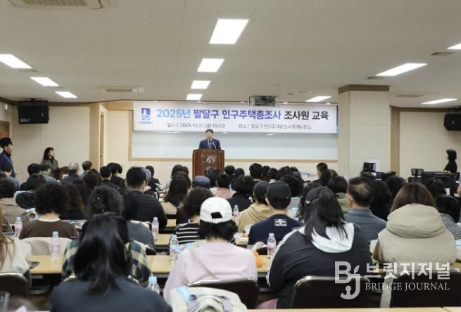 브릿지저널 김경미 기자 | 수원시 팔달구는 지난 10월 31일, 영동시장 소재 28청춘몰 영동아트홀에서 조사원 121명을 대상으로 ‘2025년 인구주택총조사 조사원 사전준비 교육’을 실시했다.