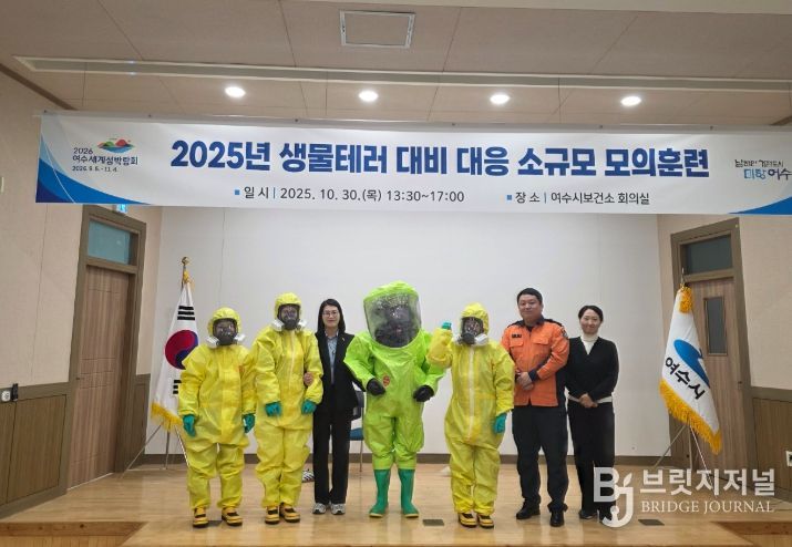 브릿지저널 김경미 기자 | 여수시는 지난 10월 30일 여수시보건소 회의실에서 ‘2025년 생물테러 대비·대응 소규모 모의훈련’을 실시했다.