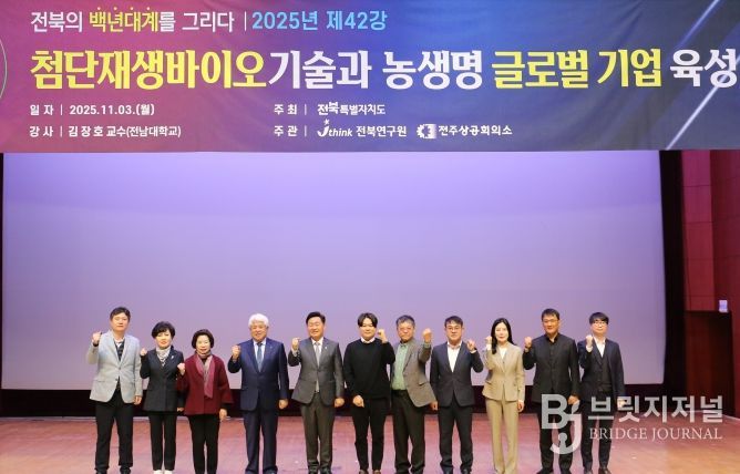 전북연구원은 3일 오전 8시, 전북특별자치도청 대공연장에서 ‘전북 백년포럼’ 제42강을 개최했다. 이번 포럼에서는 ‘첨단재생바이오기술과 농생명 글로벌기업 육성’을 주제로 전남대학교 김장호 교수가 연사로 초청됐다.