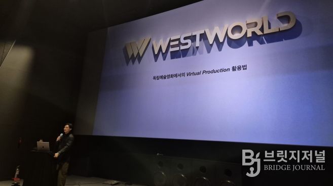 두 번째 세션에서 버추얼프로덕션 전문기업 웨스트월드의 허동혁 본부장은 실제 독립예술영화 제작 현장에서 버추얼프로덕션을 지원하고 촬영해 온 사례를 중심으로 발표를 진행했다.