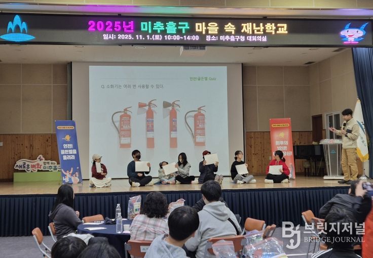 브릿지저널 김경미 기자 | 인천 미추홀구종합자원봉사센터(센터장 유중형)는 지난 1일 구청 대회의실에서 관내 아동, 청소년 등 다양한 연령층의 자원봉사자 120여 명이 참석한 가운데 마을 속 재난학교 ‘배우고(Go)! 체험하고(Go)! 우리 마을, 안전! 골든벨’을 진행했다.