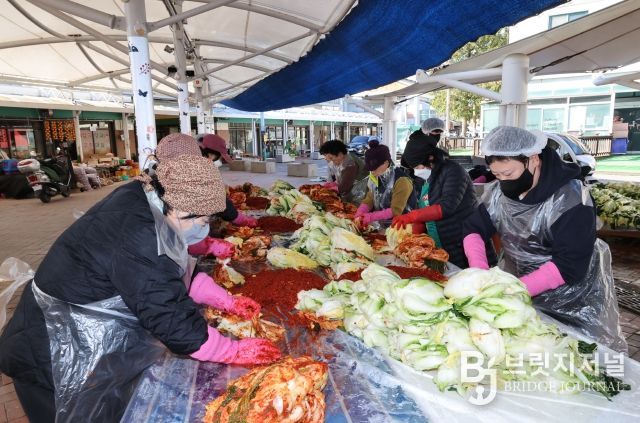 브릿지저널 윤나영 기자 | 무주반딧불시장 상인회가 지난 3일 시장 원형광장에서 김장 나눔 행사를 펼쳐 훈훈함을 전했다.