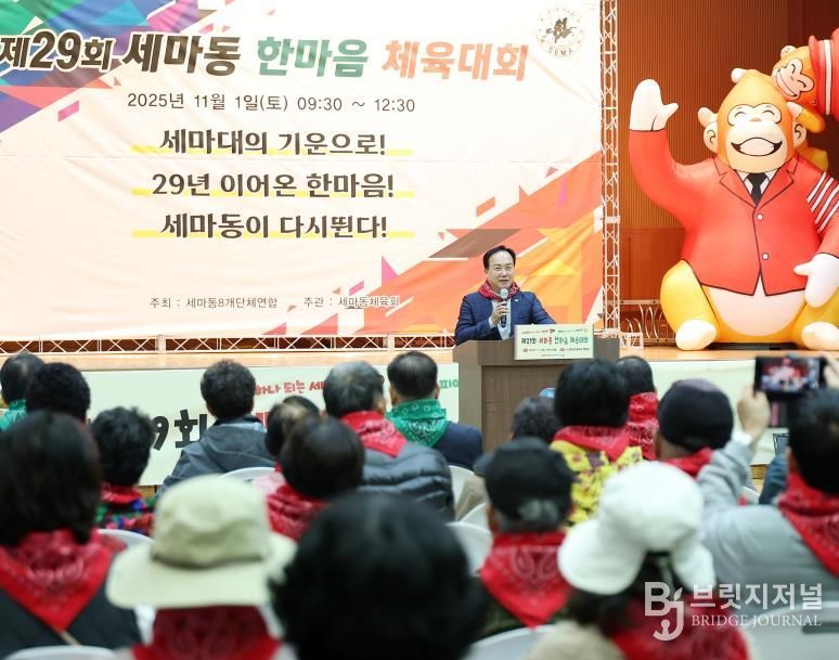 브릿지저널 김경미 기자 | 오산시는 세마동 체육회와 세마동 7개 단체연합이 주관한 ‘제29회 세마동 한마음 체육대회’가 지난 11월 1일 광성초등학교 체육관에서 성황리에 개최됐다고 밝혔다.