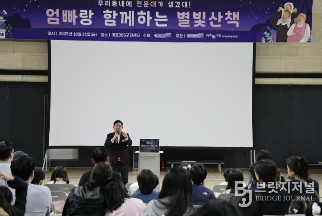 브릿지저널 김경미 기자 | 박강수 마포구청장은 10월 31일 저녁 7시, 마포365구민센터 내 마포365천문대에서 열린 ‘엄빠랑 함께하는 별빛산책’ 행사에 참석해 마포구민들과 특별한 가을밤을 보냈다.