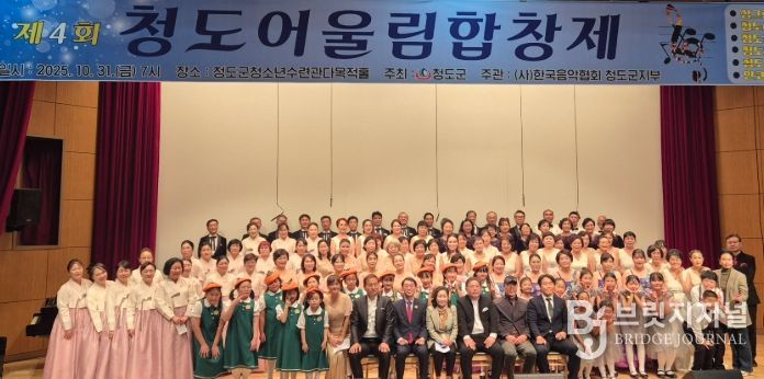 브릿지저널 정보영 기자 | 청도군이 주최하고 (사)한국음악협회 청도지부(대표 김주석)이 주관한 ‘제4회 청도어울림합창제’가 지난 10월 31일 오후 7시, 청도군청소년수련관 다목적홀에서 따뜻한 분위기 속에서 펼쳐졌다.