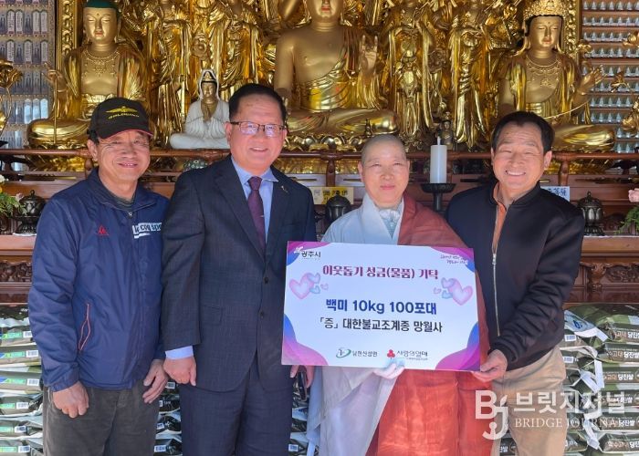 브릿지저널 김경미 기자 | 광주시 남한산성면 산성리에 위치한 대한불교 조계종 망월사는 3일 지역 내 어려운 이웃들을 위해 300만 원 상당의 백미(10㎏) 100포대를 남한산성면 행정복지센터에 기부했다.