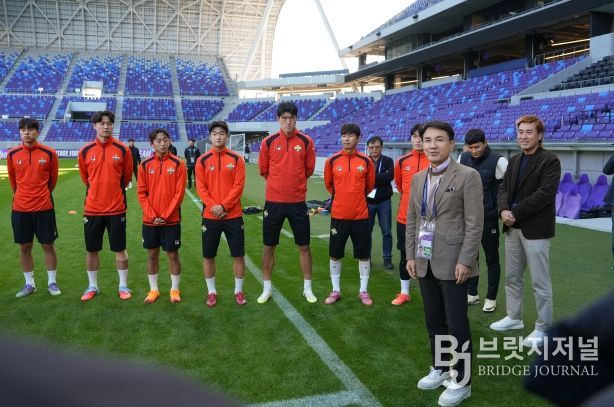 브릿지저널 윤나영 기자 | 김진태 강원특별자치도지사(구단주)는 11월 3일 오후 3시, 일본 히로시마 에디온 피스 윙 스타디움을 방문해 아시아챔피언스리그 조별리그 원정경기를 앞두고 훈련 중인 강원FC 선수단을 격려하고 응원의 메시지를 전했다.