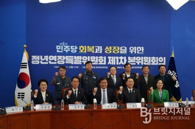 브릿지저널 김경미 기자 | 더불어민주당 회복과 성장을 위한 정년연장특별위원회는 3일 오전 11시, 1차 본위원회의를 열고 그간의 논의 결과를 공유하며 ‘법정 정년 65세 단계적 연장’의 연내 입법 추진 방안을 본격적으로 논의했다.