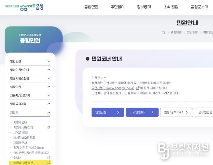 브릿지저널 김경미 기자 | 음성군은 군민들이 집에서도 취득세, 자동차세 등 각종 지방세를 간편하게 계산·확인할 수 있는 ‘지방세 자동계산 서비스’를 연중 운영하고 있다고 4일 밝혔다.