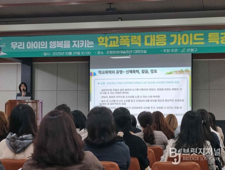 브릿지저널 김경미 기자 | 서울 은평구는 지난달 29일 은평문화예술회관 대회의실에서 학부모, 지역 주민 약 100명이 참석한 가운데 ‘우리 아이의 행복을 지키는 학교폭력 예방 및 대응 학부모 특강’을 개최했다고 밝혔다.