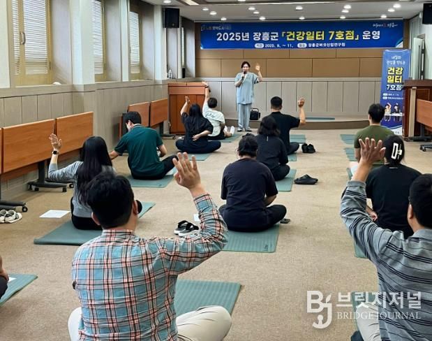 브릿지저널 김경미 기자 | 장흥군보건소는 최근 직장인의 건강관리 역량 강화와 직장 내 건강문화 확산을 위해 11월까지 장흥군버섯산업연구원(22명)을 대상으로 ‘건강일터 7호점’을 운영하여 큰 호응을 얻고 있다.
