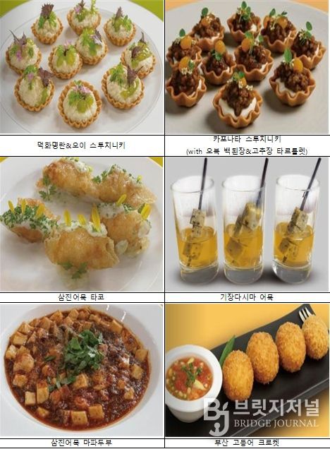 조리법은 ▲어묵, 국수, 명란, 들기름, 고등어 등과 같은 부산우수식품과 ▲기장미역·다시마, 대변항 멸치 등의 부산 향토 식재료를 바탕으로 개발됐다.