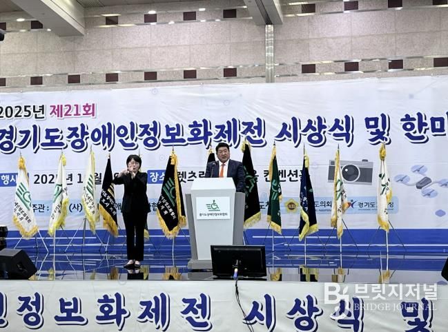 브릿지저널 김경미 기자 | 경기도장애인정보화협회는10월29일 오전11시 렛츠런파크 서울 컨벤션홀 에서‘제21회 경기도장애인정보화제전 및 한마음축제’를 성황리에 개최했다. 이번 행사는 경기도청, 경기도의회, 경기도교육청의 후원으로 열렸으며, 협회 산하18개 시·군지회 회원과 장애인 참가자, 자원봉사자 등1,000여명이 참석해 정보와 문화가 어우러진 포용의 축제를 펼쳤다.