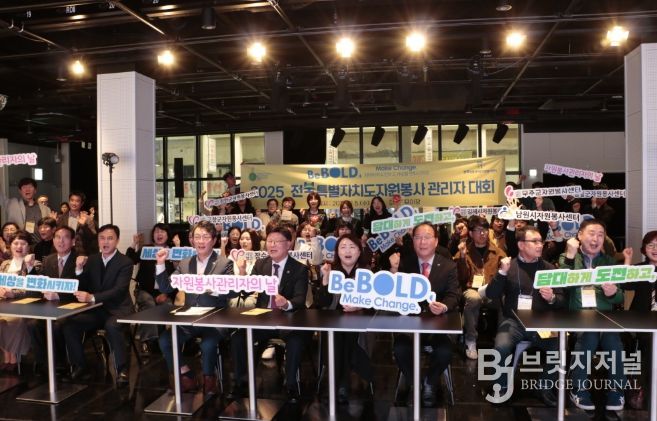 브릿지저널 윤나영 기자 | (사)전북특별자치도자원봉사센터(이사장 고영호)는 11월 5일 전주시 남부시장 모이장에서 ‘담대하게 도전하고, 세상을 변화시키자!’라는 슬로건 아래'2025 전북특별자치도 자원봉사 관리자대회'를 개최했다.
