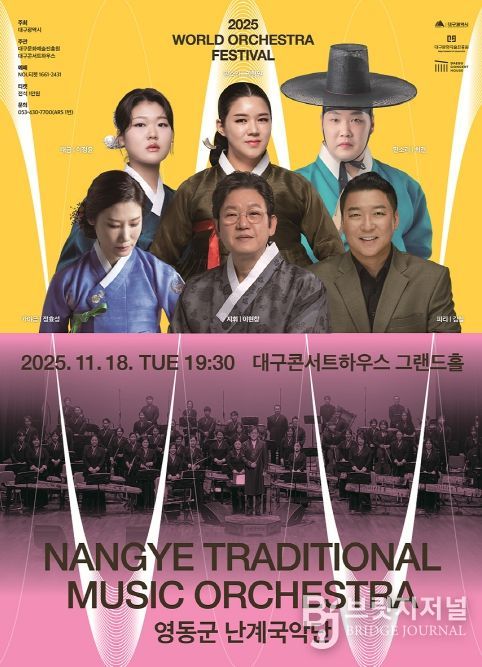 브릿지저널 김진석 기자 | (재)대구문화예술진흥원 대구콘서트하우스는 오는 11월 18일 저녁 7시 30분, 그랜드홀에서 ‘2025 월드오케스트라페스티벌’의 특별한 무대로 ‘영동군 난계국악단’의 공연을 개최한다.