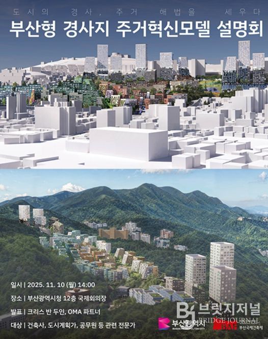 브릿지저널 윤나영 기자 | 부산시는 오늘(10일) 오후 2시 시청 국제회의장에서 세계적 건축그룹 오엠에이(OMA)와 함께 '도시의 경사, 주거 해법을 세우다 - 부산형 경사지 주거혁신모델 설명회'를 개최한다고 밝혔다.