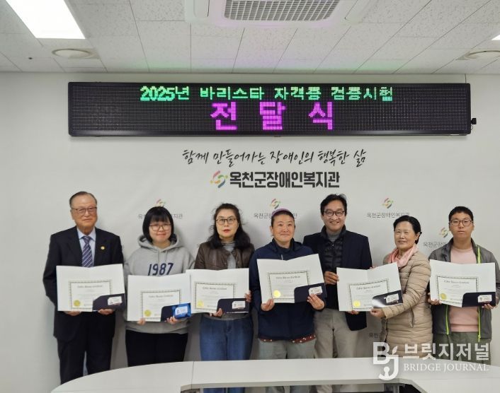 브릿지저널 김경미 기자 | 옥천군장애인복지관이 옥천군의 장애인평생학습도시 운영사업 지원을 받아 진행된 ‘장애인 바리스타 자격취득 과정’을 성공적으로 마무리했다.