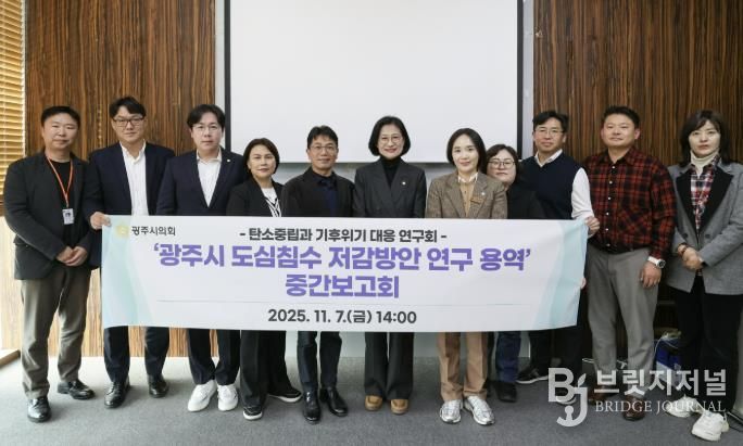 브릿지저널 김경미 기자 | 광주시의회 의원연구단체인‘탄소중립과 기후위기 대응 연구회’(대표 주임록 의원)는 11월 7일 오후 2시, 시의회 3층 대회의실에서 '광주시 도심침수 저감방안 연구 용역' 중간보고회를 개최했다.