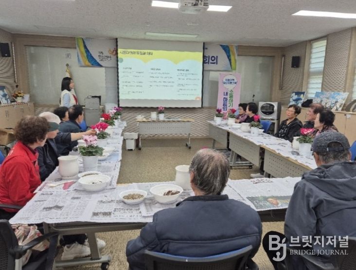브릿지저널 정보영 기자 | 금산군치매안심센터는 지난 7일 센터 프로그램실에서 치매환자와 가족 등 14명을 대상으로 원예 힐링프로그램을 운영했다.