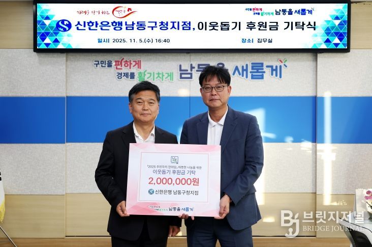 브릿지저널 김경미 기자 | 인천시 남동구는 최근 신한은행 남동구청지점이 ‘2025 주민자치 한마당 이웃돕기 후원금’ 200만 원을 기탁했다고 10일 밝혔다.