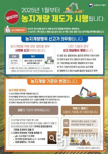 브릿지저널 정보영 기자 | 김천시는 농지 성토가 집중되는 농한기를 앞두고, 농지의 절·성토 시 사전 신고가 의무화된 점을 재차 강조하며 농업인의 각별한 주의를 당부했다.