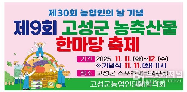 브릿지저널 김경미 기자 | 고성군은 오는 11월 11일부터 12일까지 고성군스포츠타운 4구장에서 ‘제30회 농업인의 날 기념, 제9회 고성군 농축산물 한마당 축제’를 개최한다.