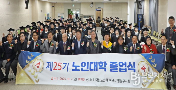 브릿지저널 김경미 기자 | 지난 11월 7일, 대한노인회 수원시 팔달구지회에서는 팔달구청장 및 내빈들을 모시고 68명의 졸업생들과 함께 제25회 노인대학 졸업식을 개최했다.