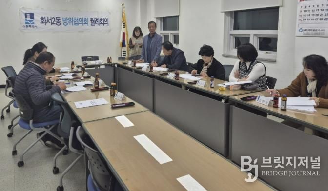 브릿지저널 김경미 기자 | 수원시 팔달구 화서2동은 지난 11월 6일 오후 7시, 화서2동 행정복지센터 2층 소회의실에서 ‘화서2동 방위협의회 11월 월례회의’를 개최했다.