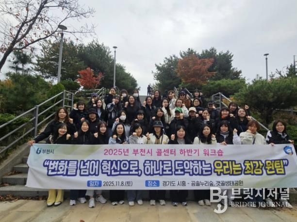 브릿지저널 김경미 기자 | 부천시는 11월 8일 시흥갯골생태공원에서 ‘2025년 하반기 고객상담콜센터 힐링 워크숍’을 열었다. 이번 워크숍은 필수 근무자를 제외한 상담사 40여 명이 참여한 가운데, ‘변화와 혁신을 통한 새로운 도약’을 주제로 진행됐다.