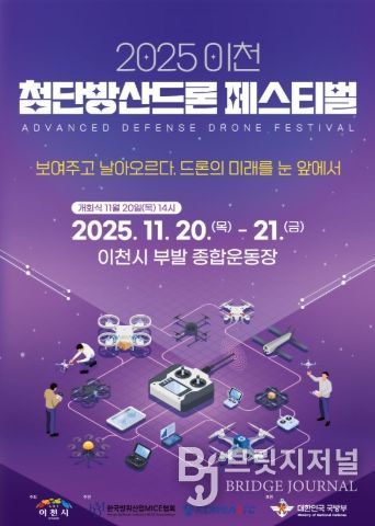 ‘보여주고, 날아오르다 – 드론의 미래를 눈앞에서’라는 슬로건 아래 열리는 이번 행사는 국내외 첨단 드론 기업들이 참여해 국방, 산업, 물류 등 다양한 분야의 드론 기술을 선보이는 실증형 전시회로 진행된다. 특히 올해 처음으로 개최되는 이번 페스티벌은 드론 산업의 기술력과 발전 방향을 한눈에 볼 수 있는 자리로, 이천시가 미래 첨단산업 중심 도시로 도약하는 계기가 될 것으로 기대된다.