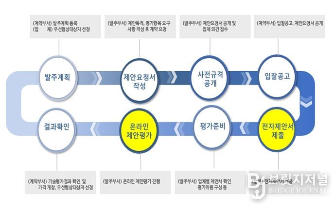 이번 온라인 평가는 PDF 제출 + 화상회의 발표를 결합한 전자적 방식으로 진행된다. 조달청 온라인 평가시스템을 활용해 사업부서는 사업 특성과 목적물의 속성에 맞춰 대면·온라인 방식을 자율적으로 선택할 수 있다. 입찰 공고 후 업체가 평가자료를 온라인으로 제출하면 평가위원회가 시스템상에서 정성평가를 진행한 뒤 결과를 확정하여 계약을 체결한다.