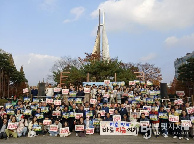브릿지저널 김경미 기자 | 11월 9일 일산문화광장에서 ‘산황산 골프장 증설 반대 시민문화제가’ 200여명의 시민들이 참석한 가눙데 열렸다. 이번 문화제는 고양시 대표적인 생태 녹지인 산황산 일대 골프장 증설 계획에 반대하는 시민들의 의지를 모르기 위해 마련된 것으로, 지역내 시민사회단체, 종교단체, 정당등이 공동주관했다.