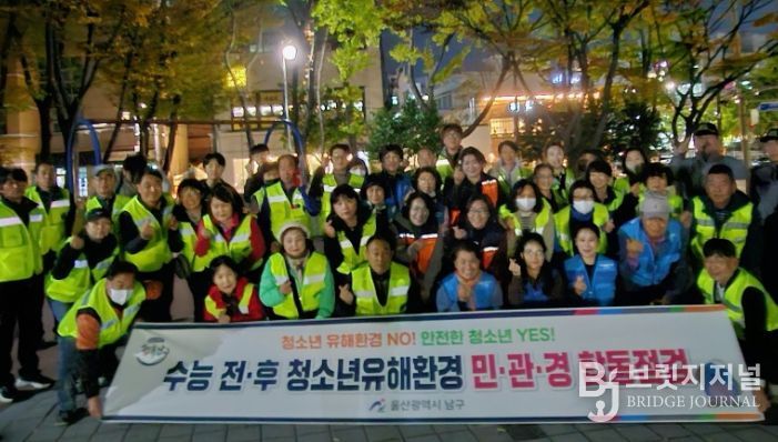 브릿지저널 윤나영 기자 | 울산 남구는 2025년도 대학수학능력시험을 앞두고 청소년들이 안전하고 건전한 환경에서 시험을 치를 수 있도록 무거동 일대 대학교 주변 번화가에서 민관경 합동점검을 실시했다고 10일 밝혔다.