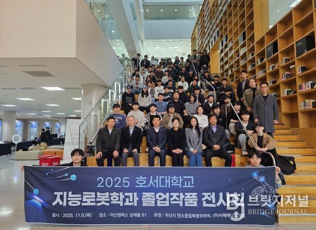 브릿지저널 정보영 기자 | 아산시의회 탄소중립특별위원회(위원장 김미영)는 지난 6일 호서대학교 아산캠퍼스에서 열린 메이커스페이스사업단(단장 김장우) 주최 ‘피지컬 AI를 활용한 지역산업 혁신’ 작품 전시회 및 경진대회에 참석했다. 이번 행사는 반도체·에너지 등 지역 첨단산업 분야에 적용 가능한 아이디어를 기반으로 한 재학생 작품을 소개하고, 산업체 및 지역사회와의 협력 기반을 강화하기 위해 마련됐다.