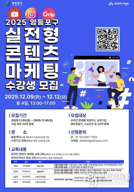 브릿지저널 김경미 기자 | 영등포구가 소상공인 판로개척을 위한 ‘실전형 콘텐츠 마케팅 프로그램’을 운영한다고 밝혔다.