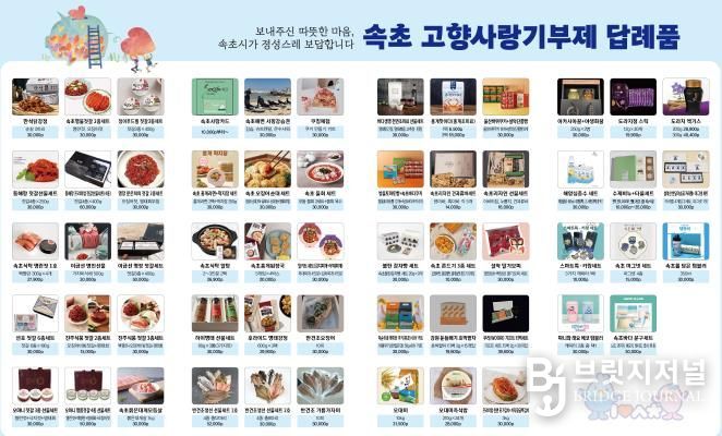 브릿지저널 윤나영 기자 | 속초시는 기부자의 선택 폭을 넓히고 지역의 특색을 반영한 매력적인 답례품을 발굴하기 위해 오는 11월 14일부터 11월 27일까지 14일간 ‘2025년 고향사랑기부제 답례품 공급업체 추가 모집’을 실시한다.