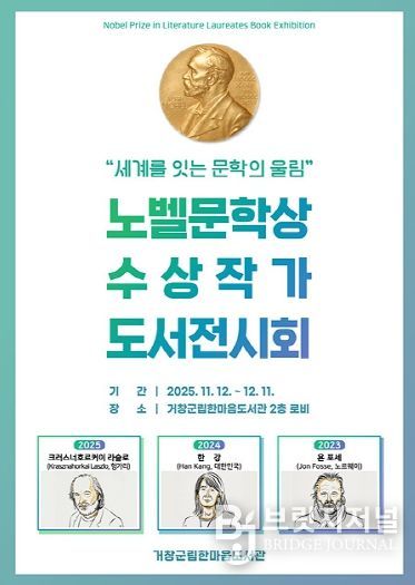 브릿지저널 김경미 기자 | 거창군은 2025년 노벨문학상 발표를 기념하여 군민들의 높아진 문학적 관심을 반영하고 세계문학의 흐름을 조명하기 위해 오는 12일부터 12월 11일까지 한 달간 한마음도서관에서 ‘노벨문학상 수상 작가 도서 전시회’를 개최한다.