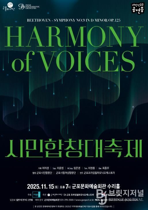 브릿지저널 김경미 기자 | 군포문화재단은 오는 11월 15일 오후 7시, 군포문화예술회관 수리홀에서 시민과 함께하는 대규모 클래식 공연 “2025 시민합창대축제”를 개최한다.