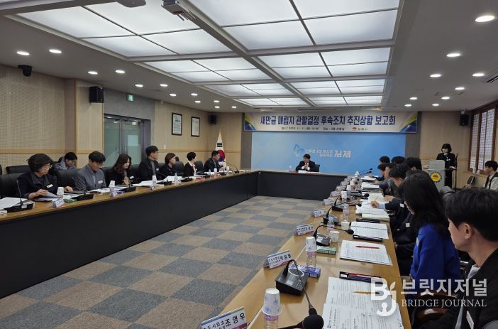 브릿지저널 윤나영 기자 | 김제시는 11일 시청 2층 상황실에서 ‘새만금 매립지 관할결정 후속조치 추진상황 보고회’를 열고, 새만금 관할권 확보 이후 부서별 후속 행정절차 이행 상황을 점검하며 실효적 관할권 확립을 위한 대응전략을 논의했다고 밝혔다.