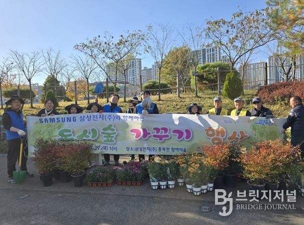 브릿지저널 김경미 기자 | 평택시와 삼성전자는 지난 10일 통복천 ‘참여의숲’에서 ‘도시숲 조성 및 가꾸기 행사’를 열고, 기업과 지역사회가 함께 만드는 지속 가능한 녹색도시 조성 활동에 앞장섰다.