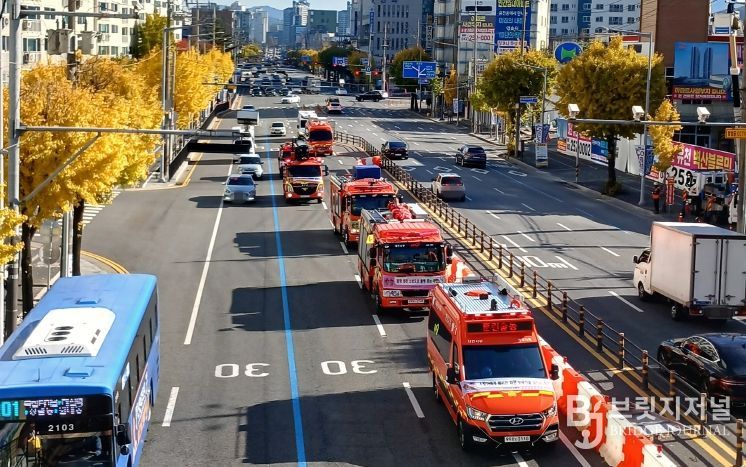 브릿지저널 정보영 기자 | 대전서부소방서는 11일 제78회 불조심 강조의 달을 맞아 시민들의 화재예방 의식을 높이고 소방차 출동로 확보의 중요성을 알리기 위한 ‘소방차 퍼레이드’를 진행했다.