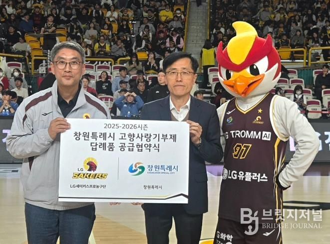 브릿지저널 김경미 기자 | 창원특례시는 고향사랑기부제 활성화를 위해 10일 창원실내체육관에서 LG세이커스와 답례품 공급 협약식을 진행했다고 11일 밝혔다.