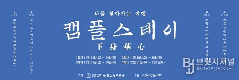 교구장 우석스님은 캠플스테이 슬로건 하신화심(下身華心)은 “몸을 낮추는 순간, 마음은 화엄의 꽃처럼 피어난다”라는 의미를 가지고 있다.” “추운 겨울 야외에서 1박 2일 캠플스테이 통해 몸을 낮추어 비울 때 마음의 빈공간을 채우고 새로운 시작을 할 수 있도록 돕는 것이 이 프로그램의 목표”라고 전했다.