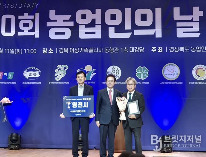 브릿지저널 정보영 기자 | 영천시는 11일 경북여성플라자 동행관에서 열린 제30회 경상북도 농업인의 날 기념행사에서 2025년 경북 시‧군 농정평가 ‘최우수상’을 수상하는 영예를 안았다.