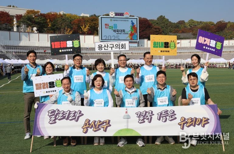 브릿지저널 김경미 기자 | 용산구의회는 지난 11월 7일 효창운동장에서 열린 “2025 서울시 구의회 의원 한마음 체육대회”에 참가해 서울시 25개 자치구의회 의원들과 화합과 교류의 시간을 가졌다.