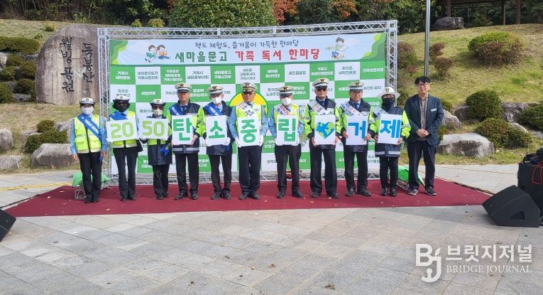 브릿지저널 김경미 기자 | 거제시는 지난 8일, 독봉산웰빙공원에서 새마을문고 거제시지부(회장 신종엽)와 함께 ‘탄소중립 실천 캠페인’을 진행했다.
