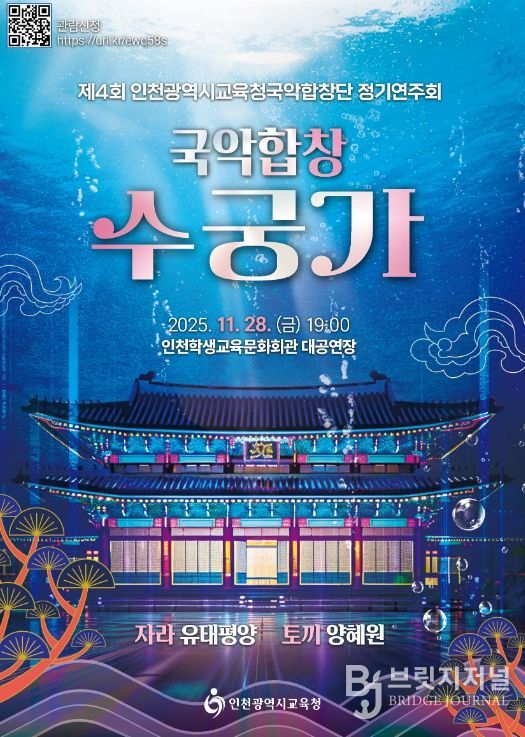 브릿지저널 김경미 기자 | 인천광역시교육청은 11월 28일 오후 7시 인천학생교육문화회관 대공연장에서 ‘제4회 인천광역시교육청국악합창단 정기연주회’를 개최한다.