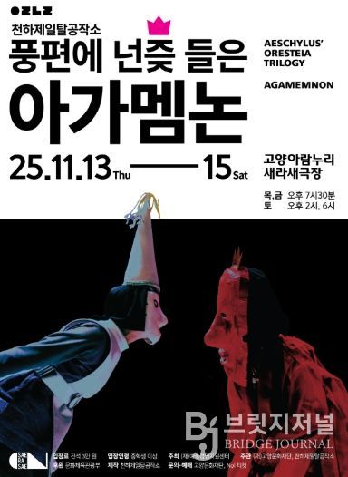브릿지저널 김경미 기자 | (재)고양문화재단은 오는 11월 13일부터 15일까지 3일간, 고양아람누리 새라새극장에서 천하제일탈공작소의 탈춤극 〈풍편에 넌즞 들은 아가멤논〉을 선보인다.