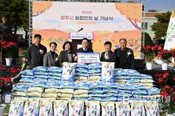 브릿지저널 김경미 기자 | 양주시농업인단체협의회가 지난 11일 “제30회 양주시 농업인의 날”을 맞아 관내 어려운 이웃을 위해 써달라며 백미1,500kg(550만 원 상당)을 기부했다.
