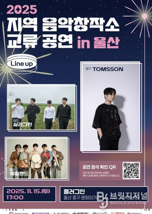 브릿지저널 윤나영 기자 | 울산 중구문화의전당에서 운영하는 울산음악창작소가 오는 11월 15일, 11월 16일 오후 5시 성남동 플러그인(문화의거리 14)에서 ‘2025 지역 음악창작소 교류 공연 in 울산’을 개최한다.